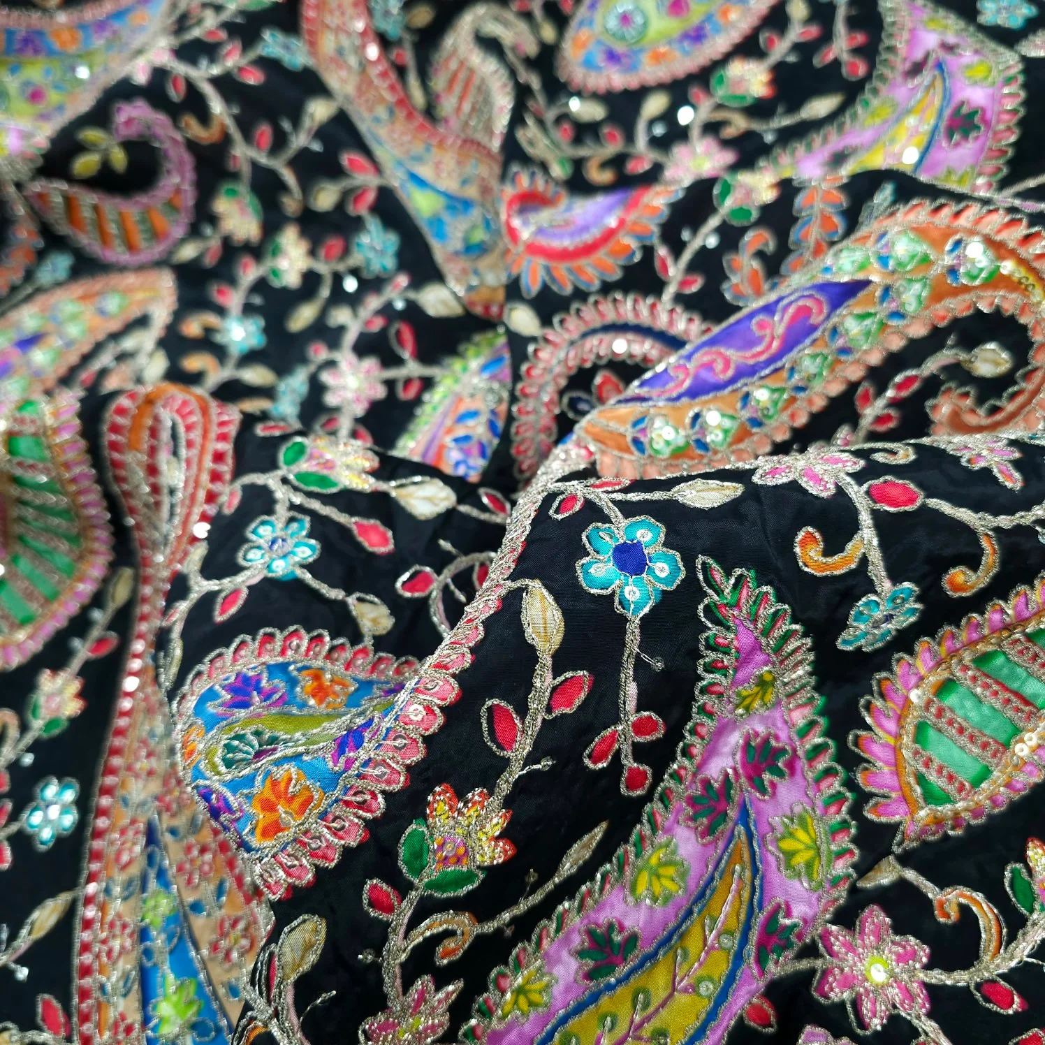 Black Crepe Base Fabric with Multicolor Embroidery & Zari, Sequin work