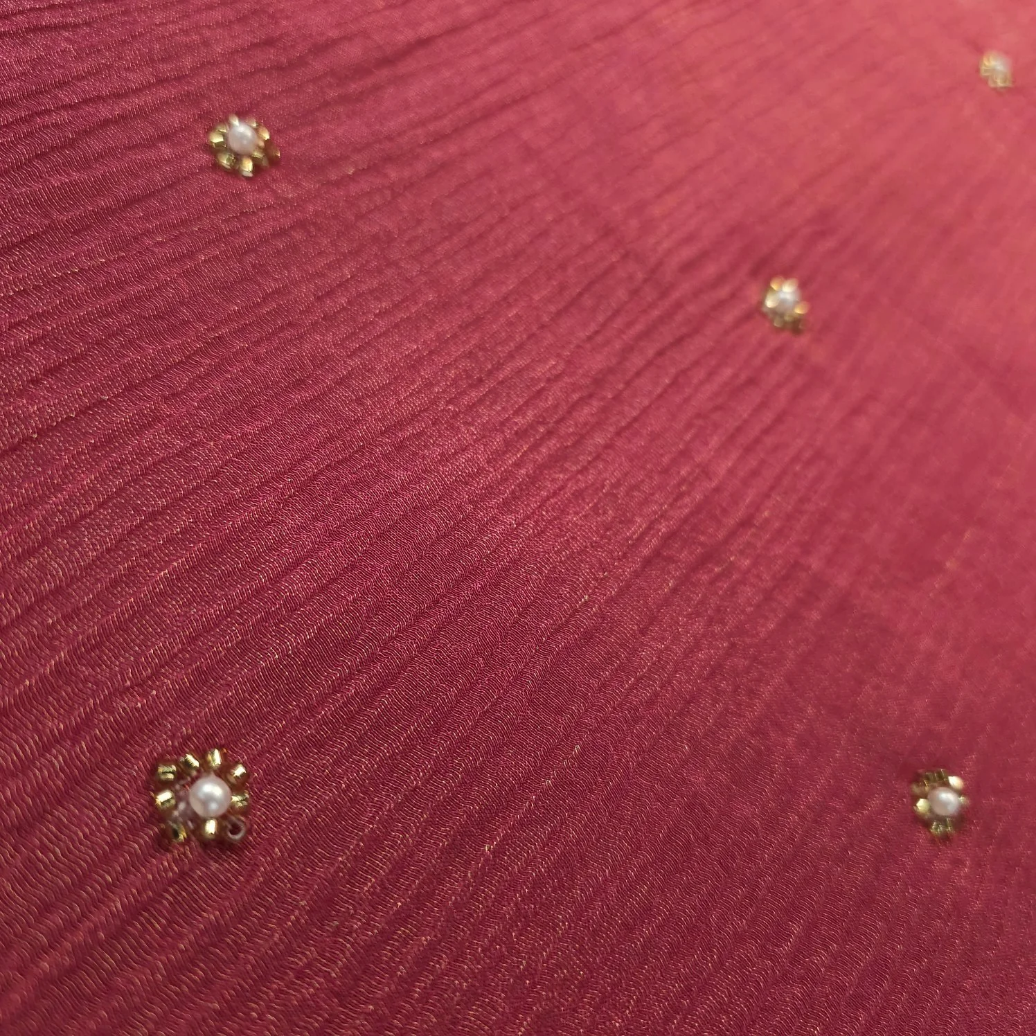 Crushed Tissue Two Tone Fabric with Pearl and Cutdana Work on Crimson Pink Base