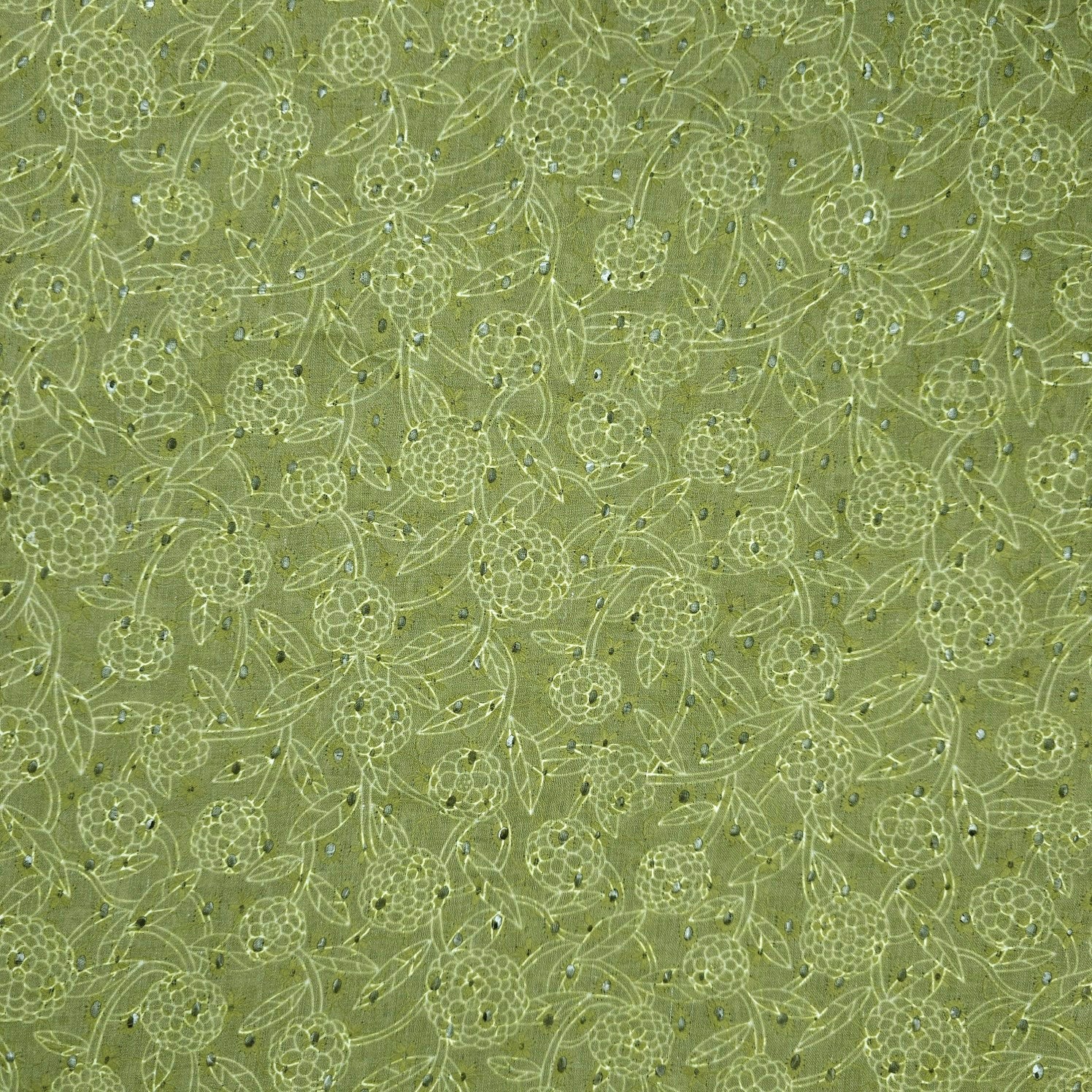 Delicate and breezy, this Hakoba cotton fabric combines intricate eyelet embroidery with cutwork and charming water color printed motifs on olive green color base. Lightweight and breathable, it’s perfect for creating elegant summer wear like kurtis, tops, dresses, and more.