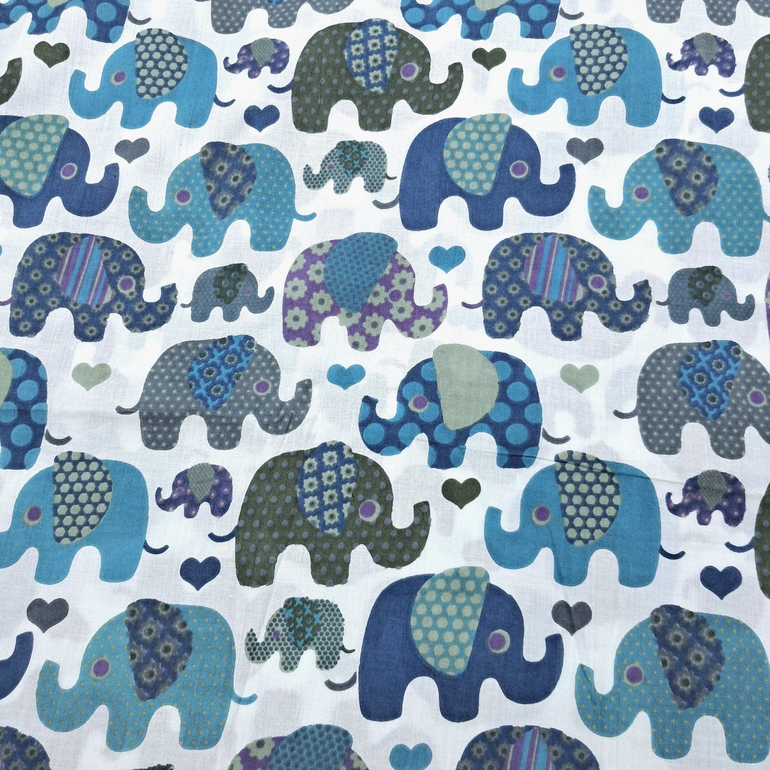 Playfully printed cotton fabric featuring a charming elephant motif in vibrant colors. The quirky and artistic design adds a fun and lively touch. Soft, breathable, and perfect for casual and creative projects.