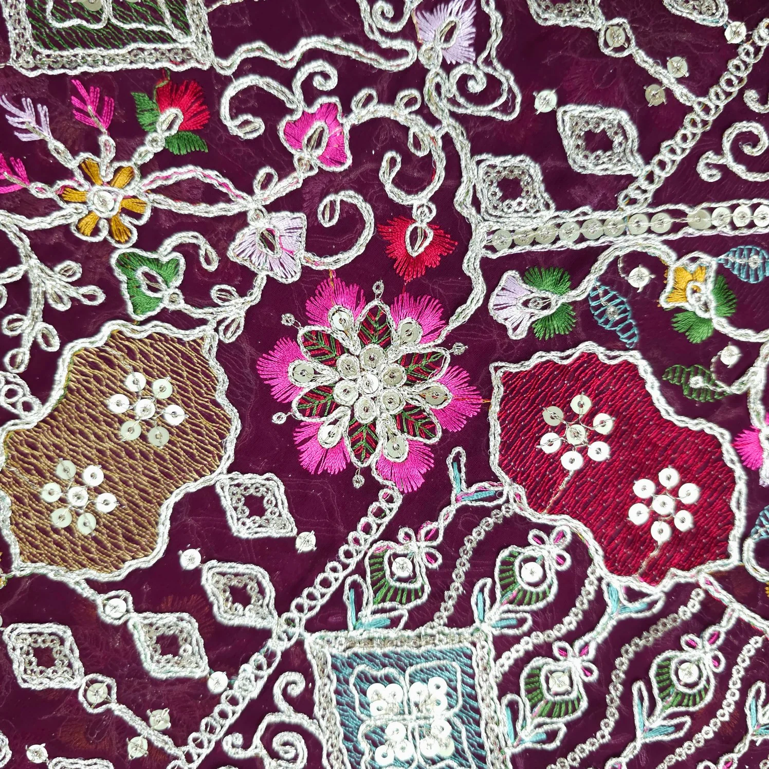 ✔ All-over multicolor thread embroidery