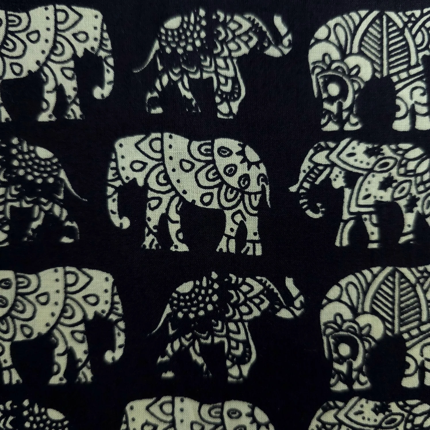 Warli - Digitally Printed Cotton Fabric with Elephant Motif